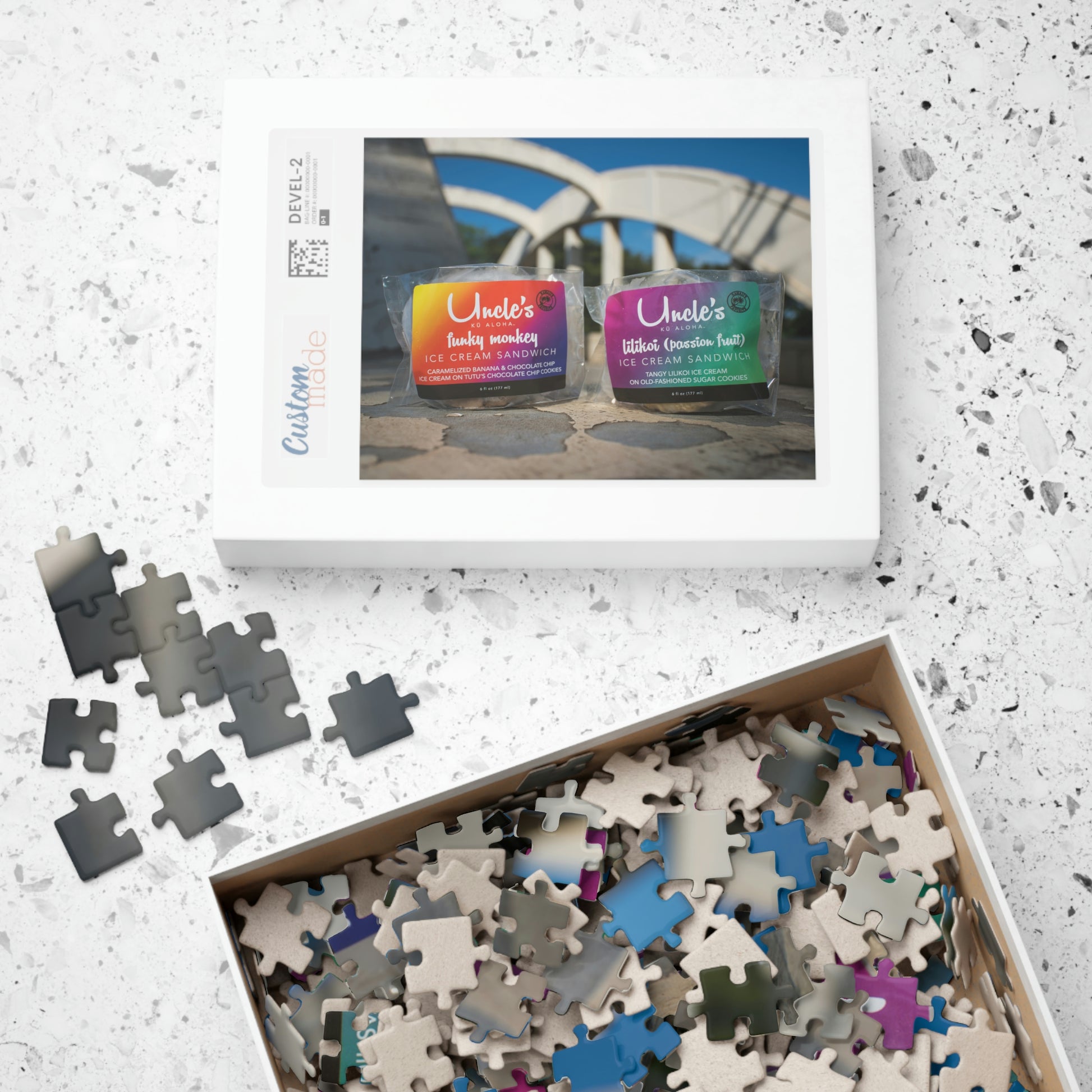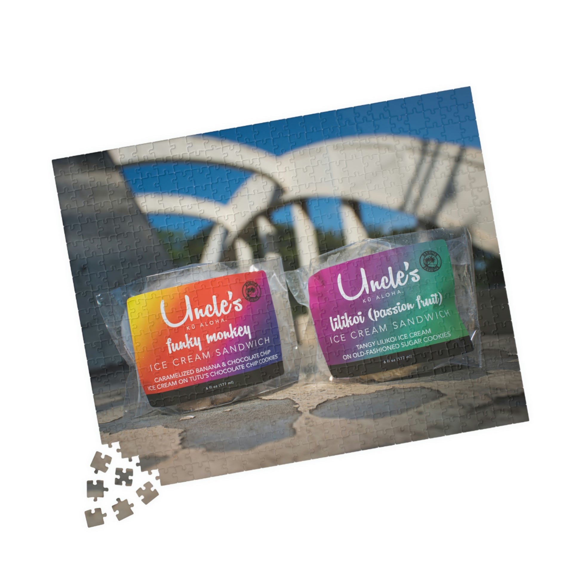 Enjoy a piece of Hawai‘i as you put together a classic North Shore O‘ahu scene: Uncle's Ice Cream sandwiches on the iconic Hale‘iwa bridge! This personalized 252-piece jigsaw puzzle is made with high-quality chipboard pieces, ideal for children (ages 9+) and adults. Ships in a gift-ready metal box, so loved ones can get in some wholesome downtime together!