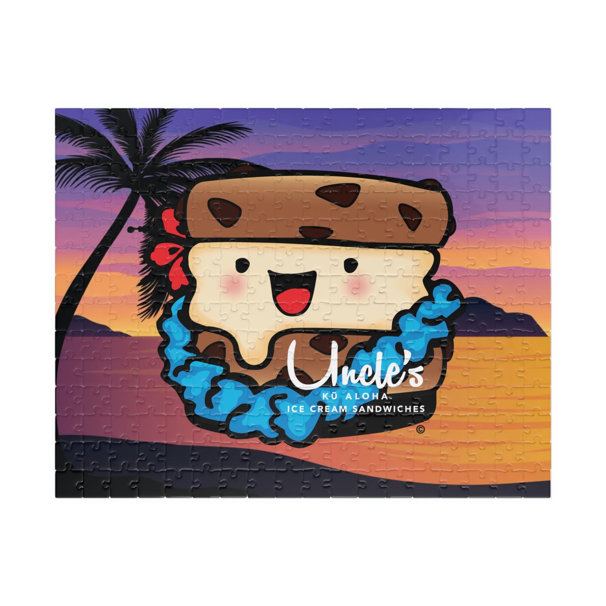 Bring some Aloha to your game time with a fun jigsaw puzzle from Uncle's Ice Cream! Showing off our signature "Uncle Sammie," this puzzle features 252 high-quality chipboard pieces. Ideal for children (ages 9+) and adults alike. Ships in gift-ready metal box for a show-stopping presentation.